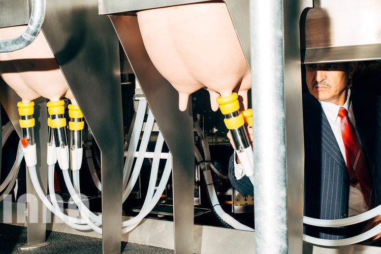 کشور آلمان به کیفیت بالای محصولات و راندمان بالای آنها مشهور است و صنعت دامپروری این کشور هم از آن مجزا نیست. آلمان یکی از بزرگترین صادرکنندگان شیر در دنیاست به طوری که در دهه گذشته٬ سالانه نزدیک به 3.500 لیتر تولید شده است. اما کشاورزان امروزه به دنبال دو برابر کردن این میزان هستند. نیکیتا تریوشین در پروژه جدید خود به نام «میراث بیشاخ» وضعیت نابسامان و دلخراش دامداریهای آلمان را به تصویر کشیده است. او نشان میدهد که گاوها چگونه در شرایط نامناسب مجبورند تا جایی که ممکن است شیر تولید کنند. او میگوید قصد دارد با عکسهایش تصور عمومی درباره شرایط زندگی گاوها در مزارع سرسبز را که در تبلیغات مشاهده میشود، عوض کند و آن روی ویرانشده و خشن این صنعت را نشان دهد.